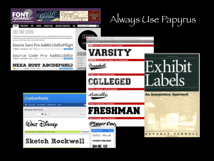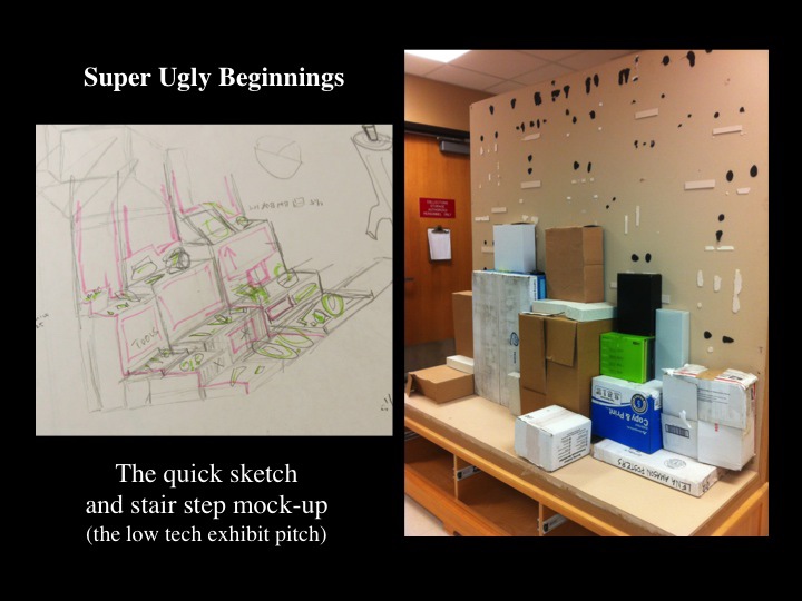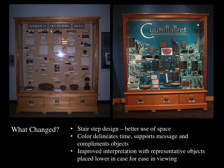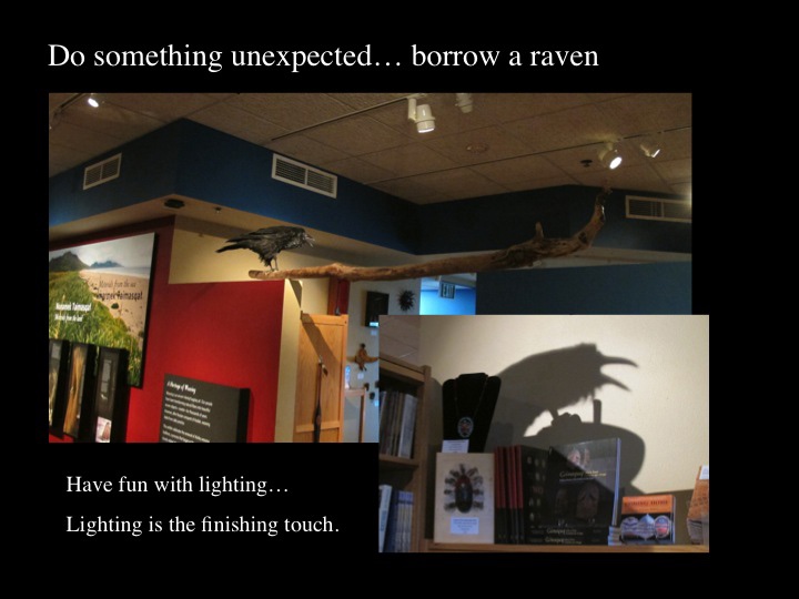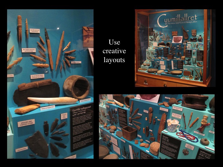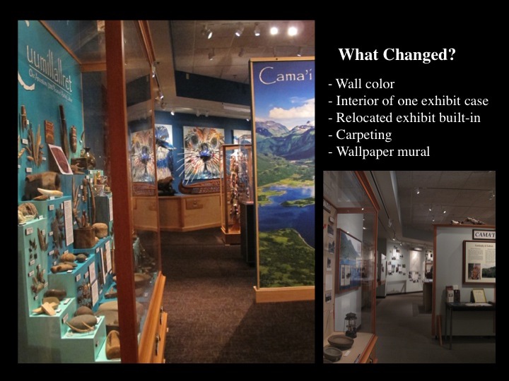 The goal was to discuss / show how small museums can make powerful changes to their exhibition spaces with a small amount of money (such as the cost of paint and rearranging their space). I also explained how to get ideas – which is often the hardest part of any design.