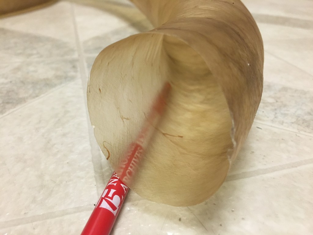After cleaning the gut you simply inflate it, let it dry, and split the tube. In my experience, one Kodiak brown bear has about 70 ft of intestine.