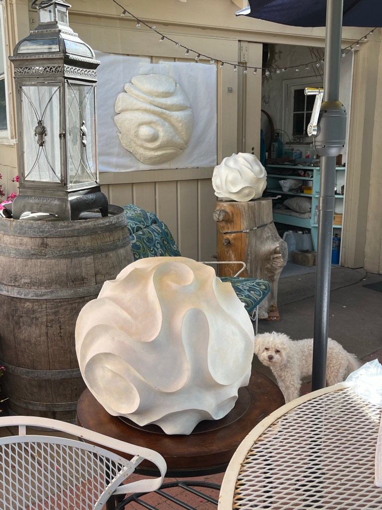 Up until this week we have had glorious weather where I live in California. I have spent many wonderful hours outside in my yard working on old and new sculptures. Now it is quite warm even in the morning hours… (noon and 97F). So, here I am, back indoors, posting work in progress and trying to brainstorm titles.